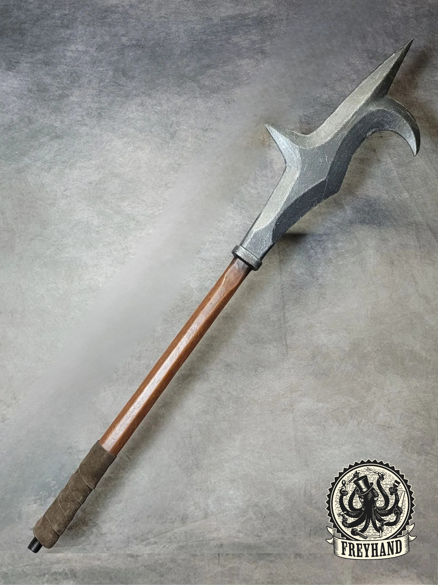 Der Wilhelm Gleve Kopf besticht durch seine gefährliche Optik und ist eine robuste und vorteilhafte Stangenwaffe auf dem Schlachtfeld. Für die sichere Anwendung im LARP haben wir ein spezielles Flexbauteil als Spitzensicherung integriert, das leichte und kontrollierte Stiche ermöglicht.