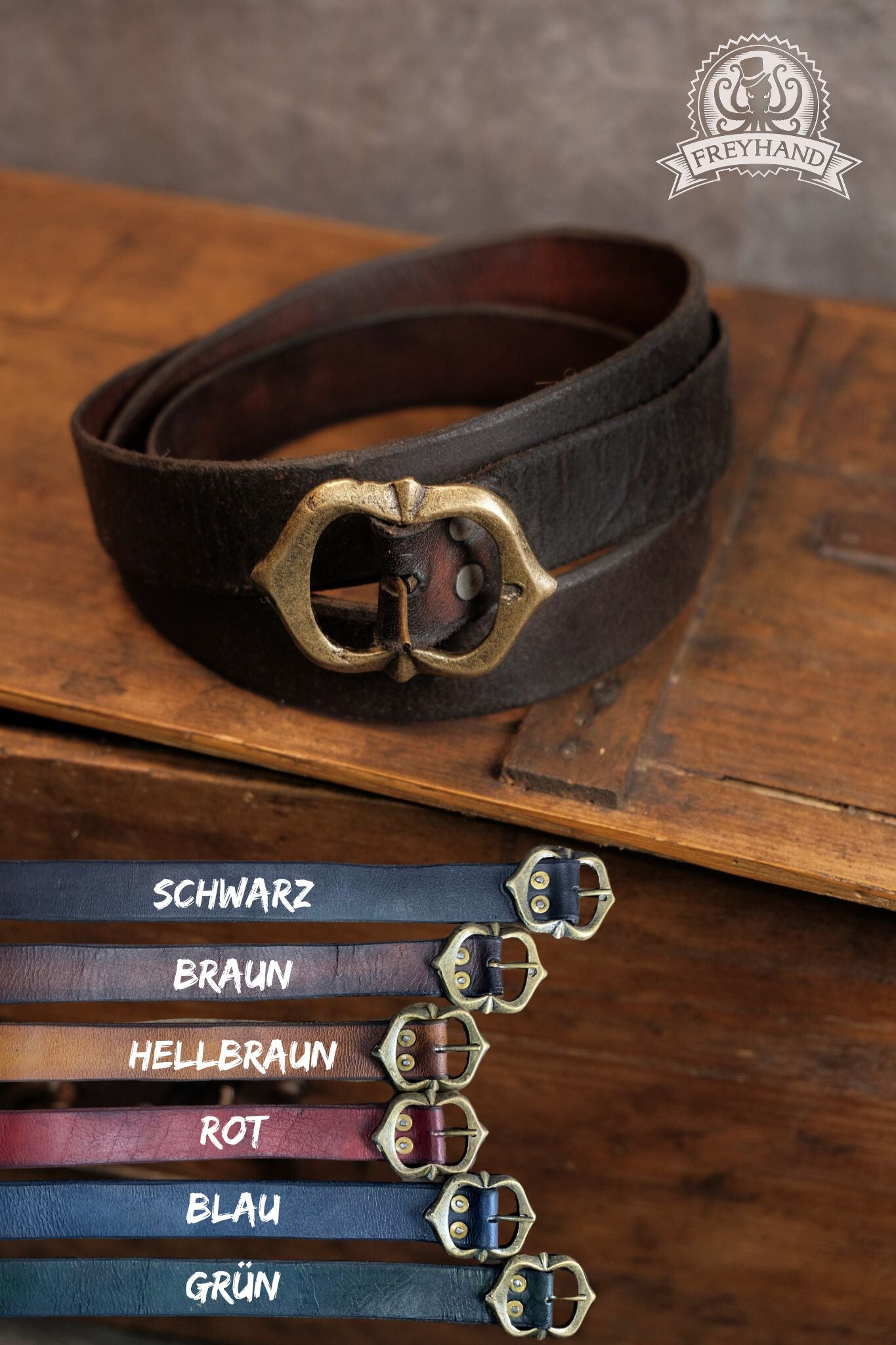 Der Gürtel „Ansgar“ in 30 mm Breite ist ein klassischer Ledergürtel mit hochwertiger Messingschnalle – robust verarbeitet und ideal für verschiedenste Gewandungskonzepte. Durch sein schlichtes Design passt er sowohl zu historischen als auch zu fantastischen Outfits und eignet sich hervorragend für LARP, Reenactment oder den Mittelaltermarkt.