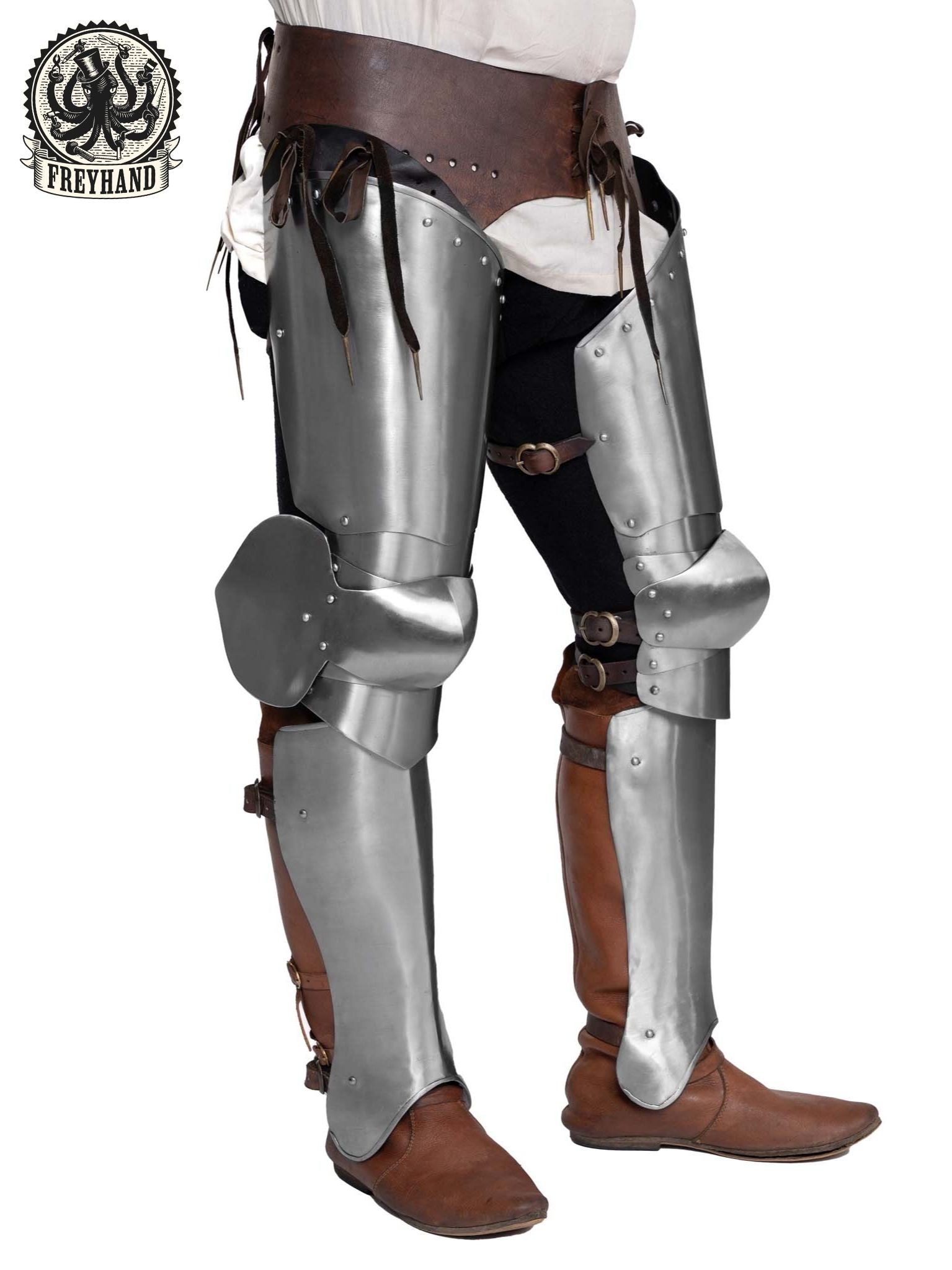 Beinpanzer "14es Jhd." Stahl blank Set