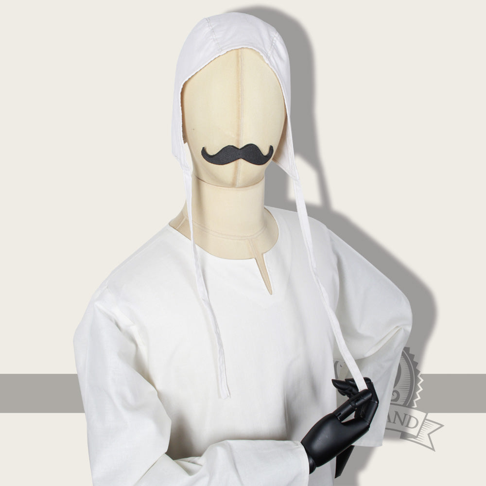 Auch bei der Adonis werden die typischen Bänder in der Regel nicht gebunden, sondern locker getragen und dienen vor allem dem historischen Erscheinungsbild. Bei Bedarf können sie dennoch geschlossen werden. Die Haube eignet sich sowohl als eigenständige Kopfbedeckung als auch als komfortable Schicht unter Helm, Hut oder weiterer Kopfbedeckung.