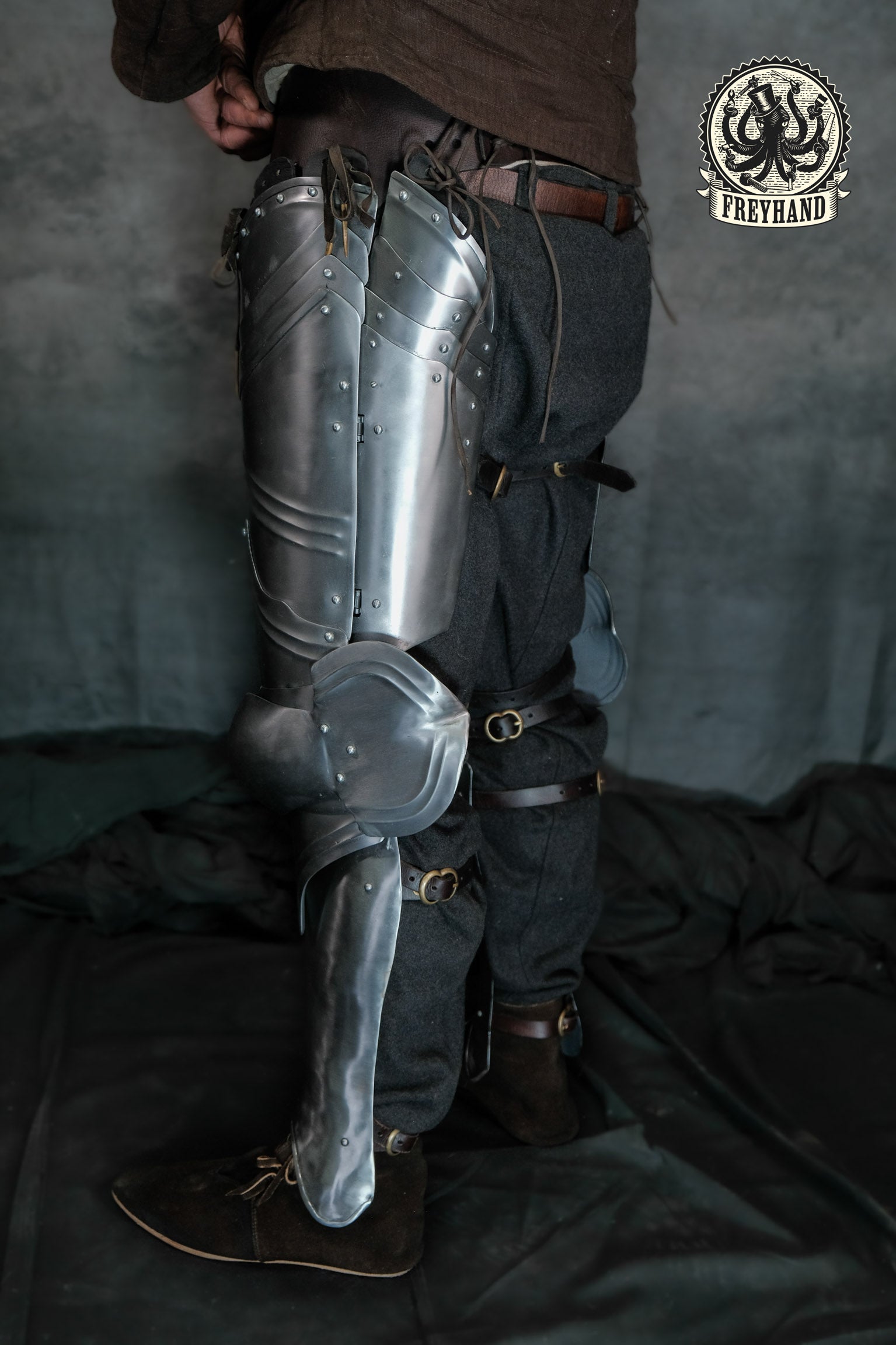 Ein wichtiger Punkt: Der gotische Beinpanzer Typ 1 lässt sich sehr gut mit den Freyhand Rüstgürteln kombinieren. Das sorgt für einen bequemen und sicheren Sitz.