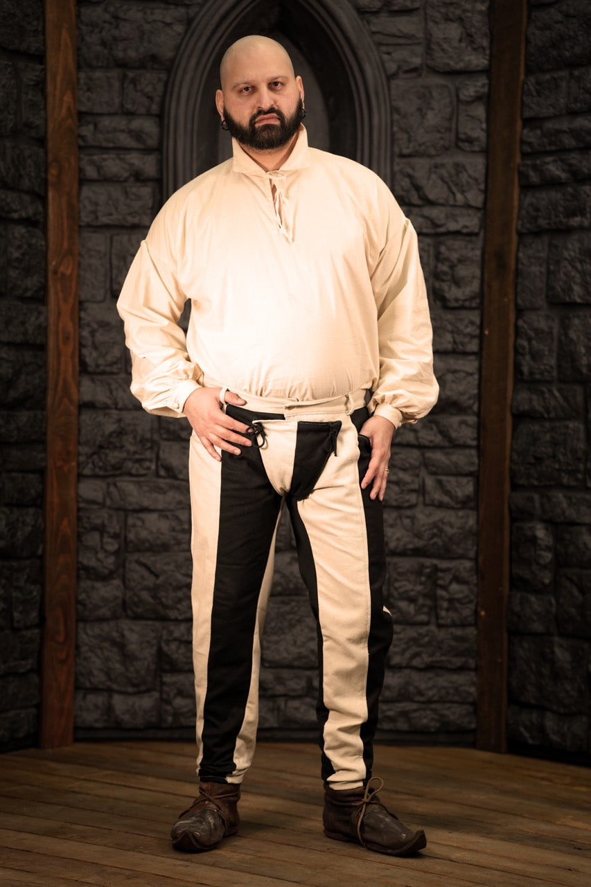 Das Imperialis Landsknechts-Set bietet vielfältige Möglichkeiten eine Uniform im Stil der Landsknechte zusammen zu stellen. Die Kostümteile sind modular aufgebaut und können leicht miteinander kombiniert werden. Verbunden werden die Teile mit Nestelbändern (eine einfache Version aus Baumwolle ist beim Kauf enthalten). Das Material ist Baumwolle in traditioneller Leinwandbindung und einem rustikalen Garn. Wer sich kreativ betätigen möchte, hat mit diesem Set tolle Möglichkeiten ein ganz individuelles Kostüm zu erarbeiten.