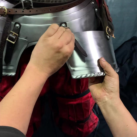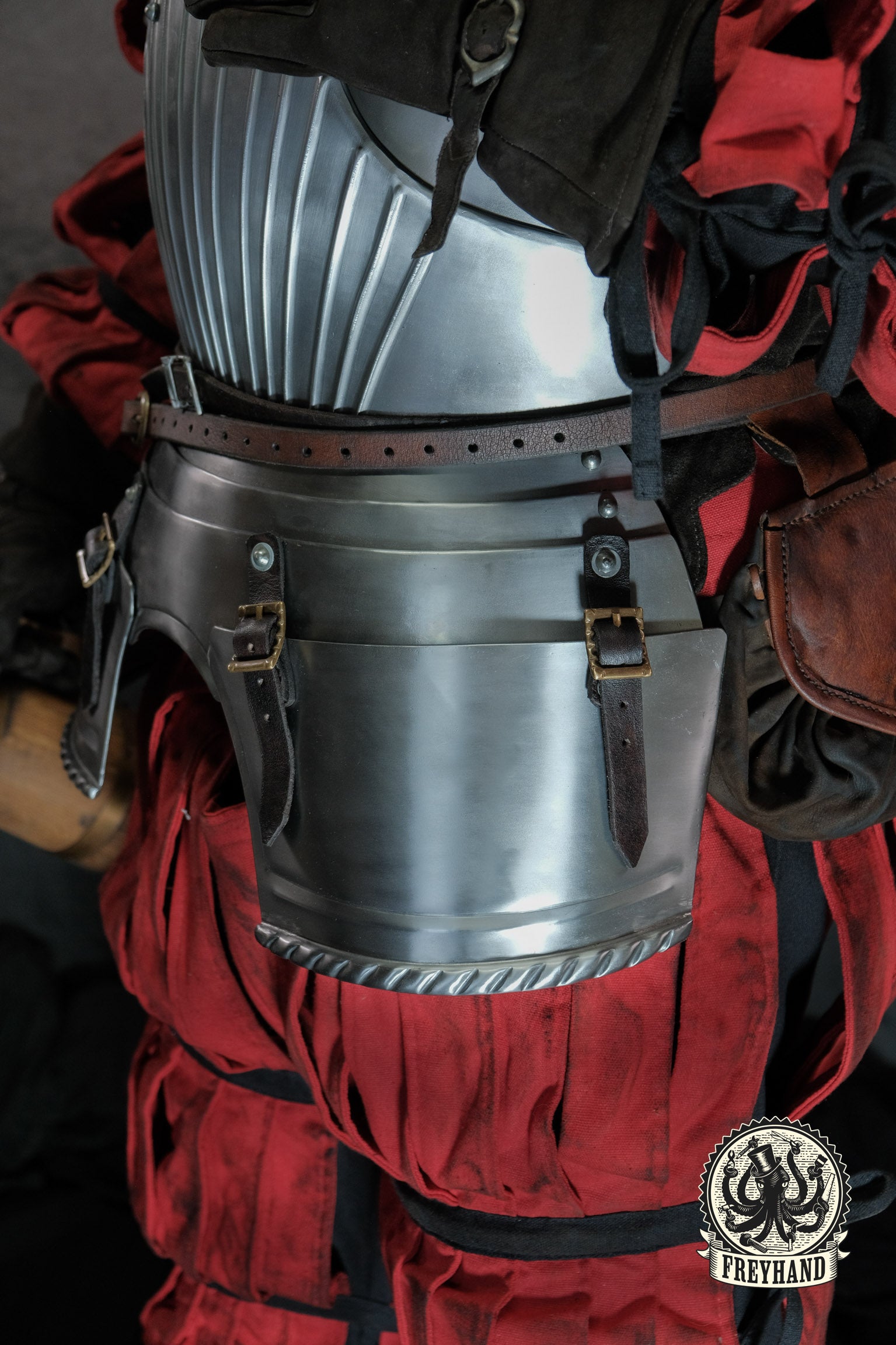Mit den kurzen Beintaschen Landsknecht Typ 1 bekommst Du eine leichtere und kompaktere Ergänzung für Deinen Brustpanzer – Besonders hervorzuheben ist die kunstvolle Schnürung am Abschluss, die einen besonderen Akzent setzt und das Gesamtbild Deines Rüstungssets stilvoll abrundet. Wie die langen Varianten sind auch diese Beintaschen hochwertig verarbeitet. Durch die beiden verfügbaren Größen – S/M für kleinere und L/XXL für größere Brustpanzerversionen – findest Du garantiert die richtige Passform für Deinen Harnisch.